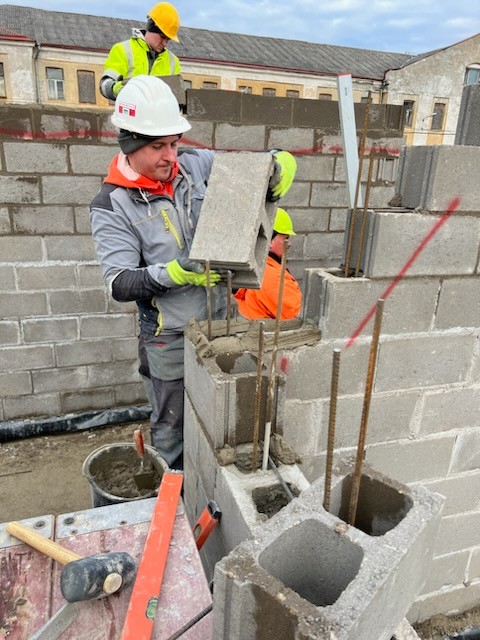 Müüritöö puhul on oluline täpsus. Seetõttu on meil sisse seatud mitmekordne kontroll: müürimees kontrollib oma tööd iga ploki- ja kivirea järgi, et see vastaks planeeritule ja ei tekiks nihkeid või ebatäpsusi. Müüritööde juht teostab iga päeva lõpus ülemõõtmised, et olla kindel objekti vastavuses joonistele. Lisaks teeme pistelist kontrolli, et välistada võimalikud vead.
